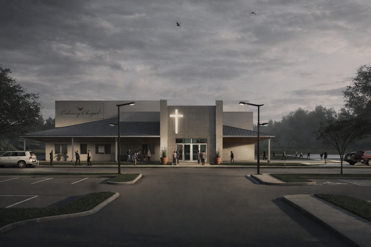 We designed a facility centered around a multipurpose worship hall enclosed with CMU construction for durability and longevity. Supporting spaces, including classrooms, daycare, and offices, were planned with efficient metal stud framing to balance cost and function. The design provided a clear focal point for the congregation with a strong entry presence and symbolic architectural elements. While initially envisioned as a two-story complex, budget constraints required the program to be reduced in scale, ensuring feasibility while retaining the essential vision.