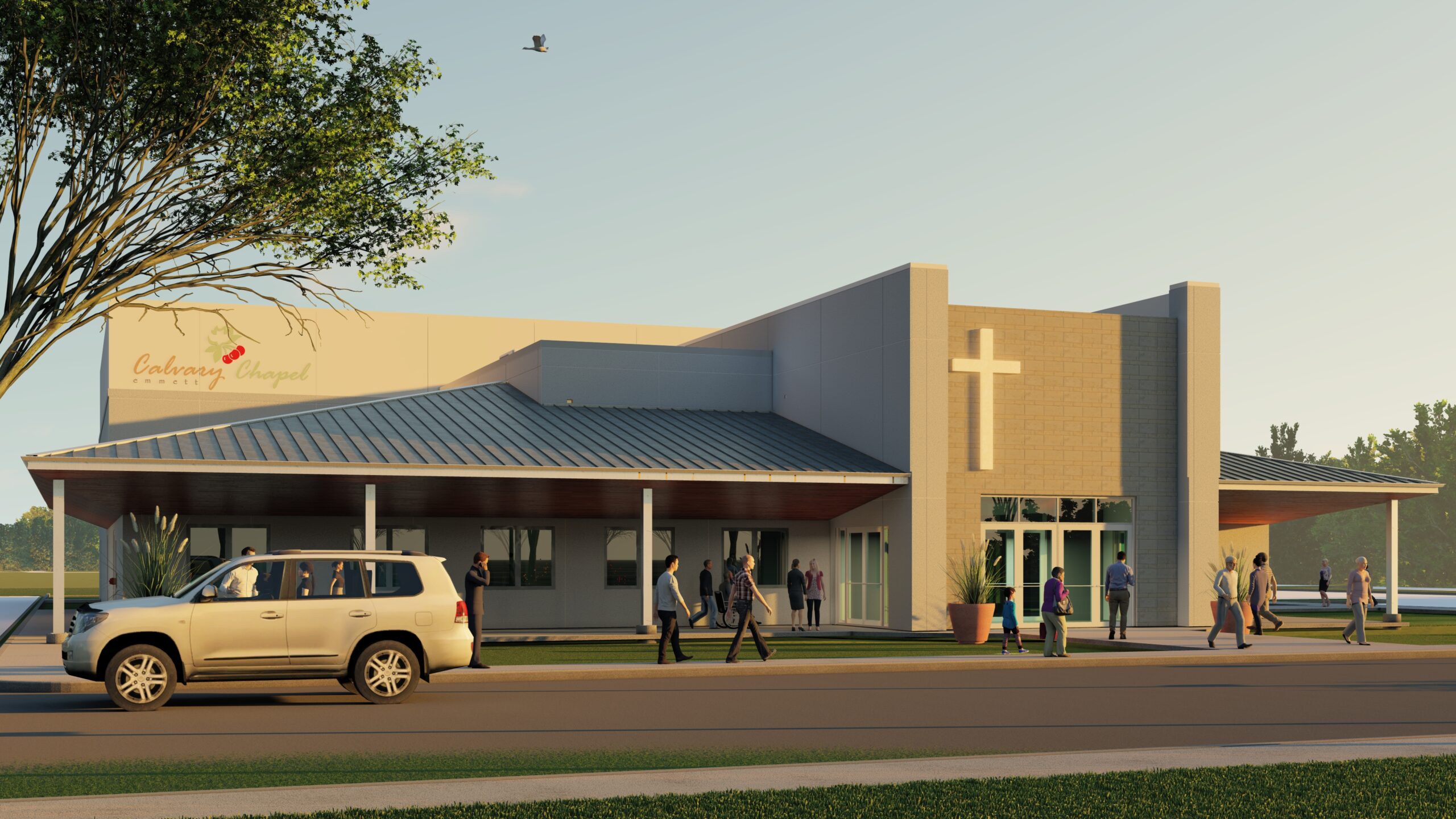 Calvary Chapel in Emmett envisioned a new church campus that would serve as the heart of its congregation while expanding its role in the community. The program needed to accommodate worship services, a K–6 school, daycare, and flexible civic functions. The challenge was to create a welcoming, durable facility that could grow with the congregation, while balancing budgetary realities and evolving community needs.