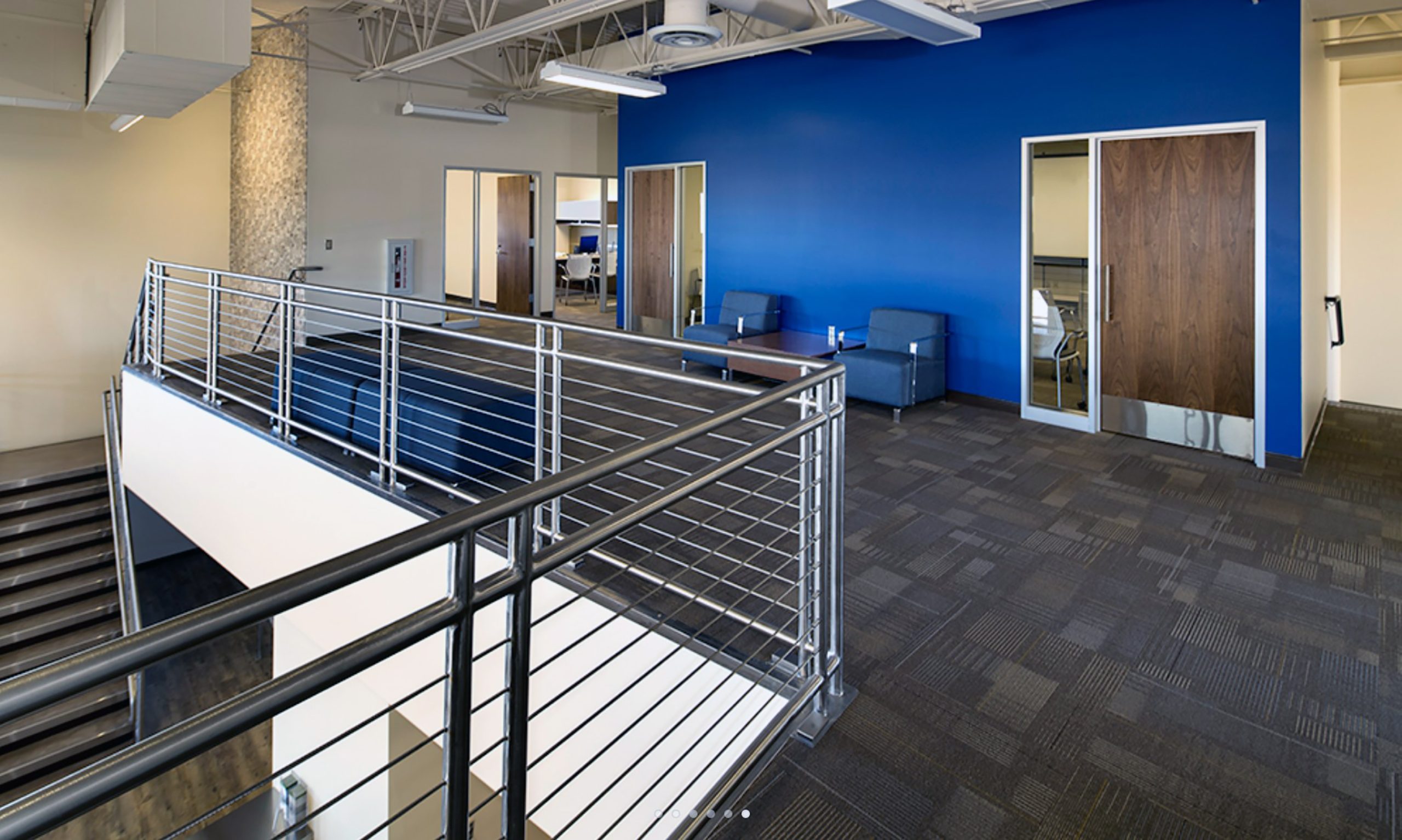 We designed a facility combining a pre-engineered metal building for the warehouse with a two-story CMU and steel-framed office and retail space. The bold exterior features exposed structural steel elements painted in HD Fowler’s signature blue, anchoring the brand’s presence. Inside, the retail and reception areas incorporate high ceilings, clean lines, and durable finishes, including a stainless-steel service counter that doubles as a focal point for customer interaction. The open office layouts emphasize transparency and collaboration, while private meeting rooms and mezzanine spaces balance functionality with comfort. Expansive glazing and bright interior finishes bring natural light throughout the workspaces, enhancing employee well-being.